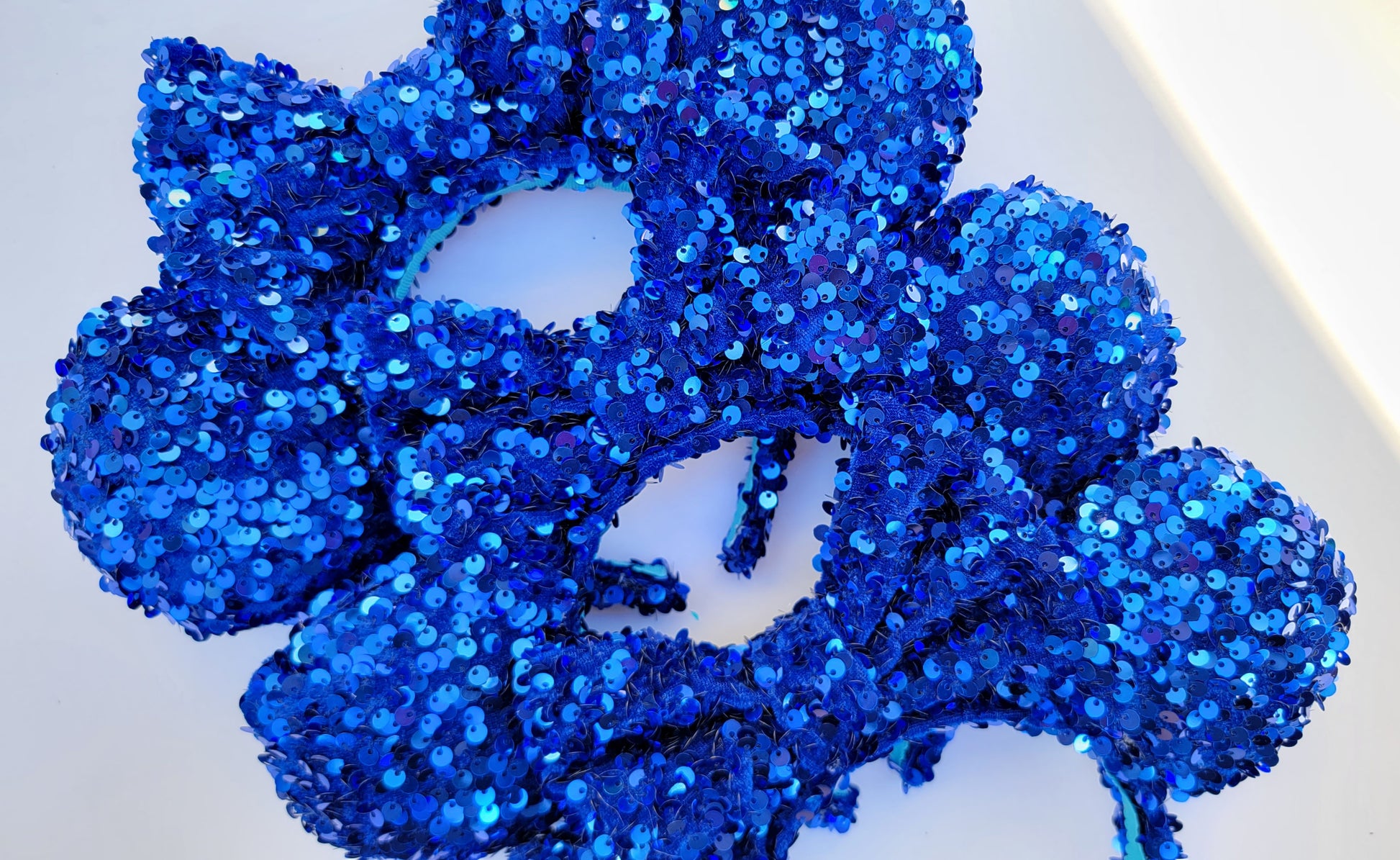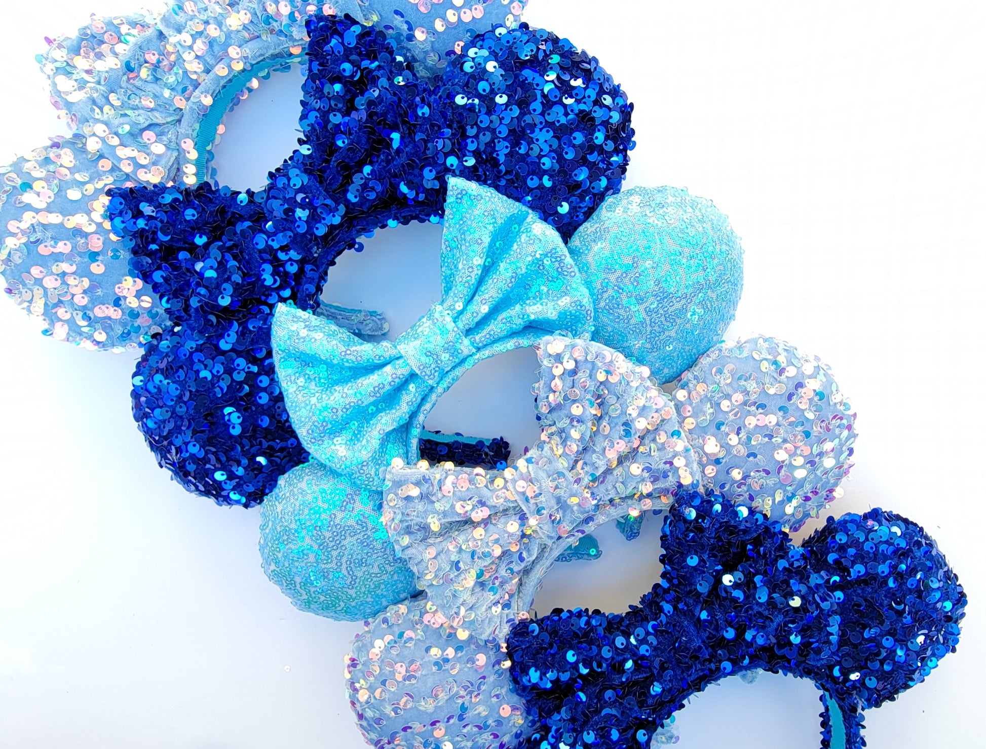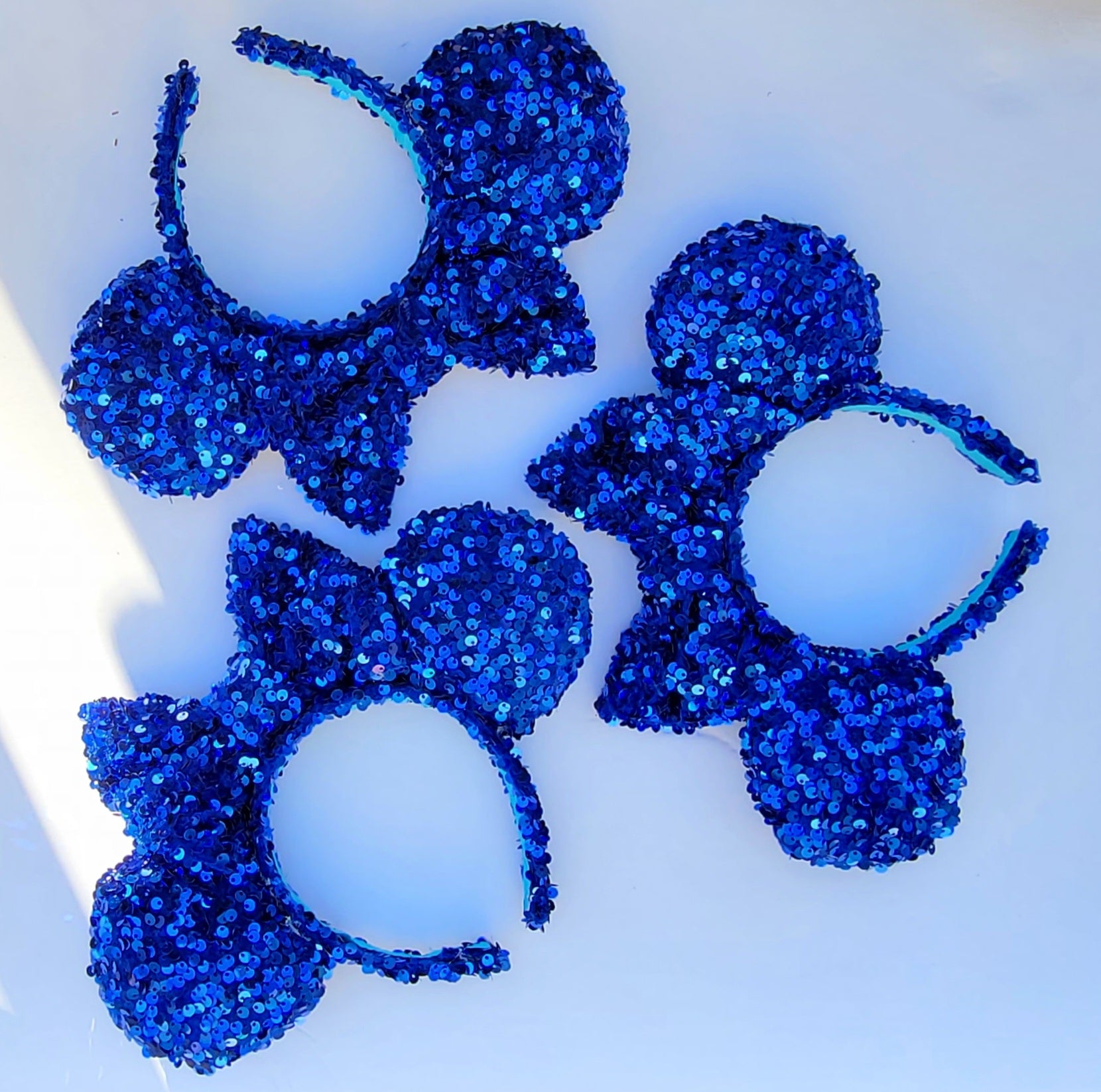 These Blue Sequin Minnie Ears are the perfect way to add a touch of sparkle to your outfit.