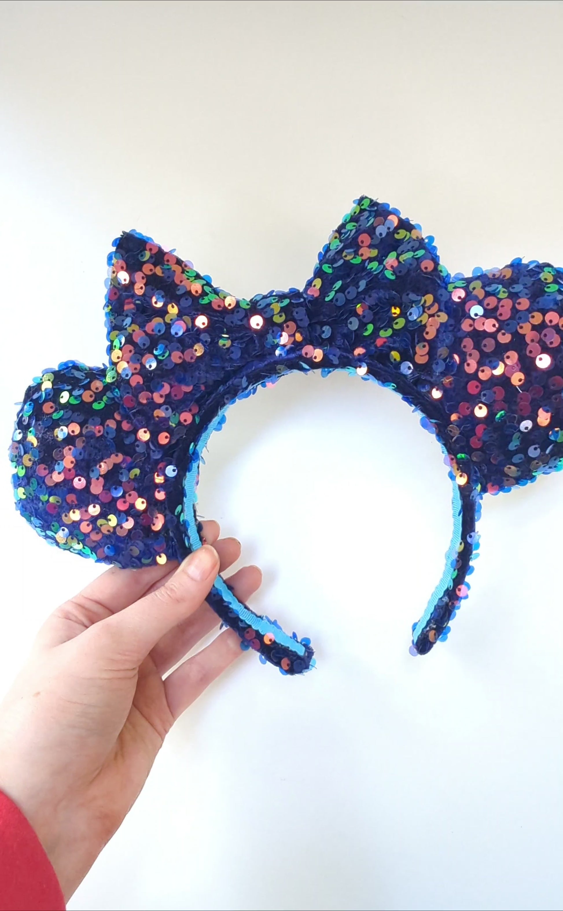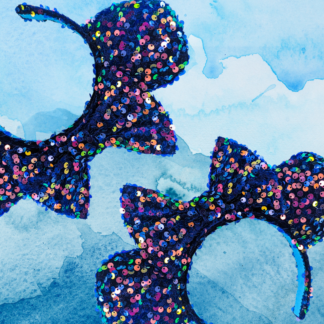 These Blue Sequin Minnie Ears are the perfect way to add a touch of sparkle to your outfit.
