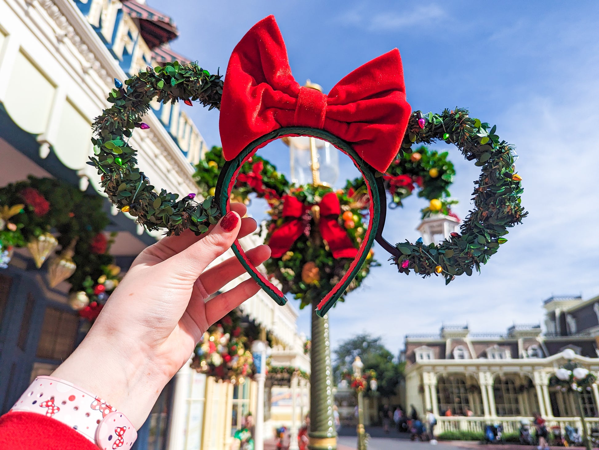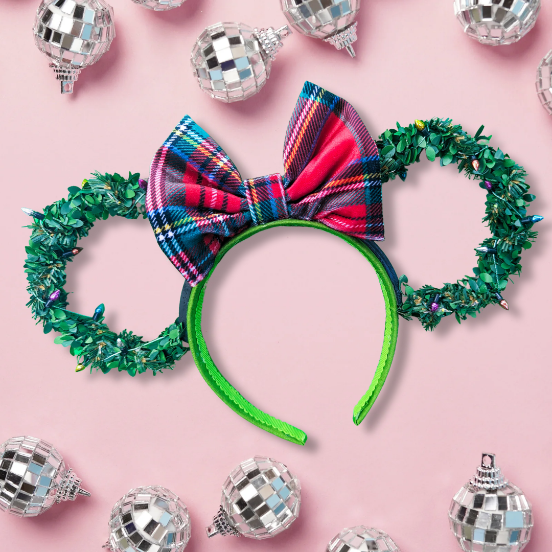 Add a festive touch to your holiday outfit with our Oh Christmas Wreath Minnie Ears. These headbands are perfect for Disney lovers who want to add a touch of magic to their holiday look.