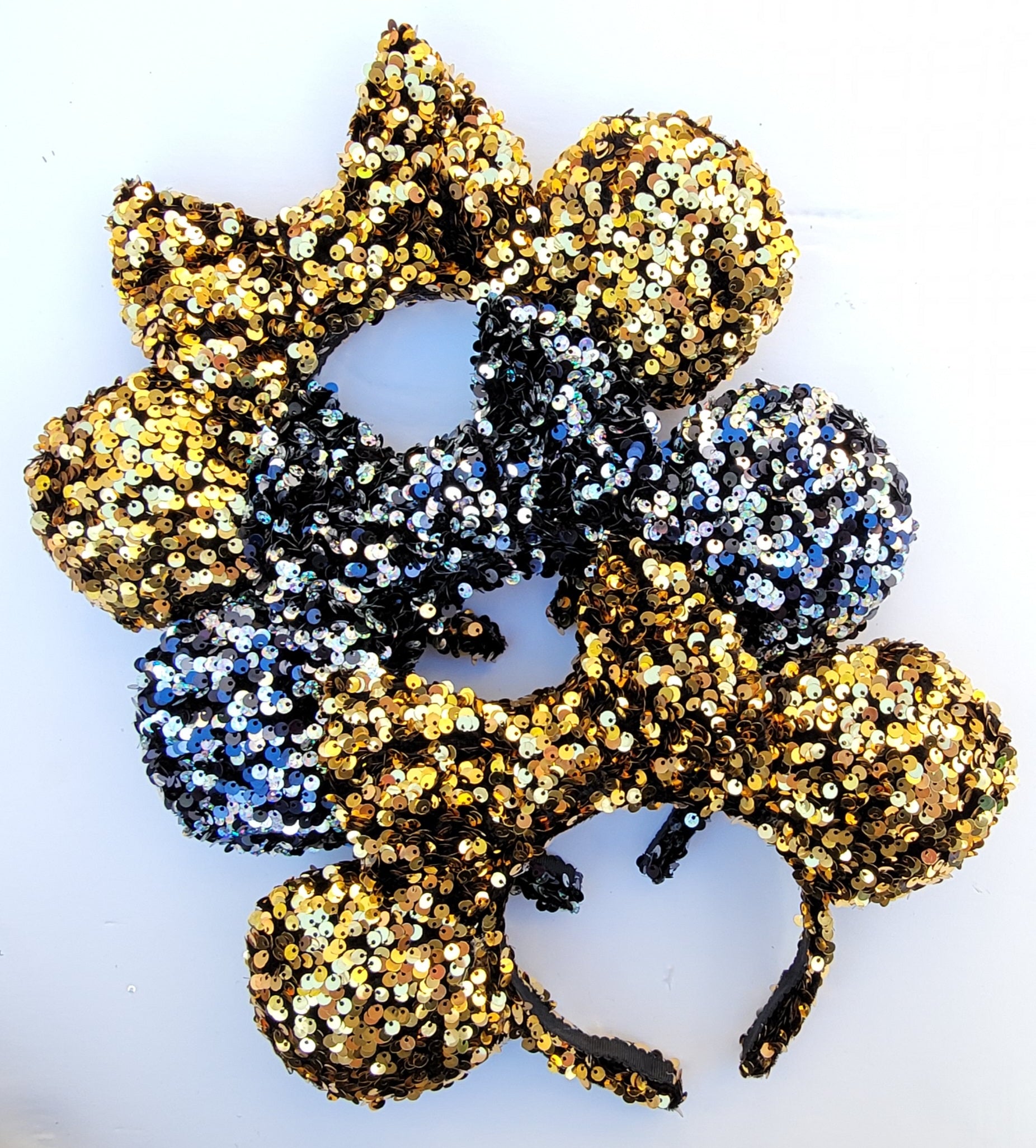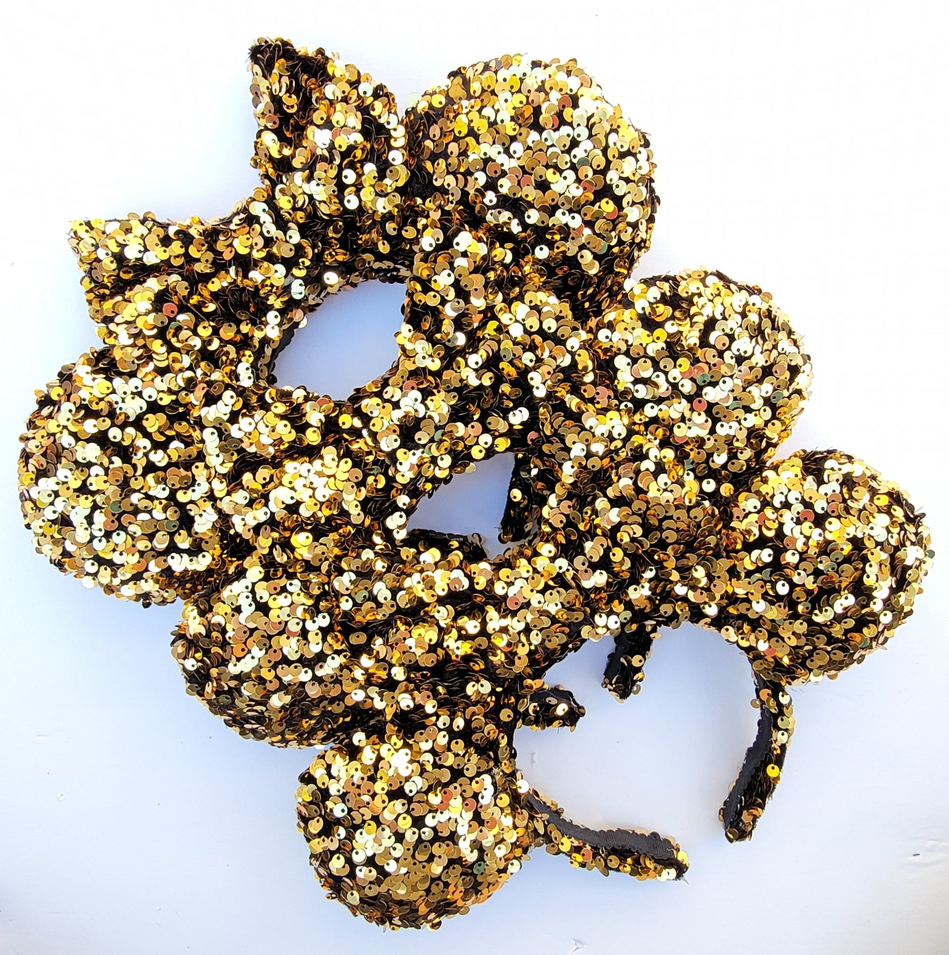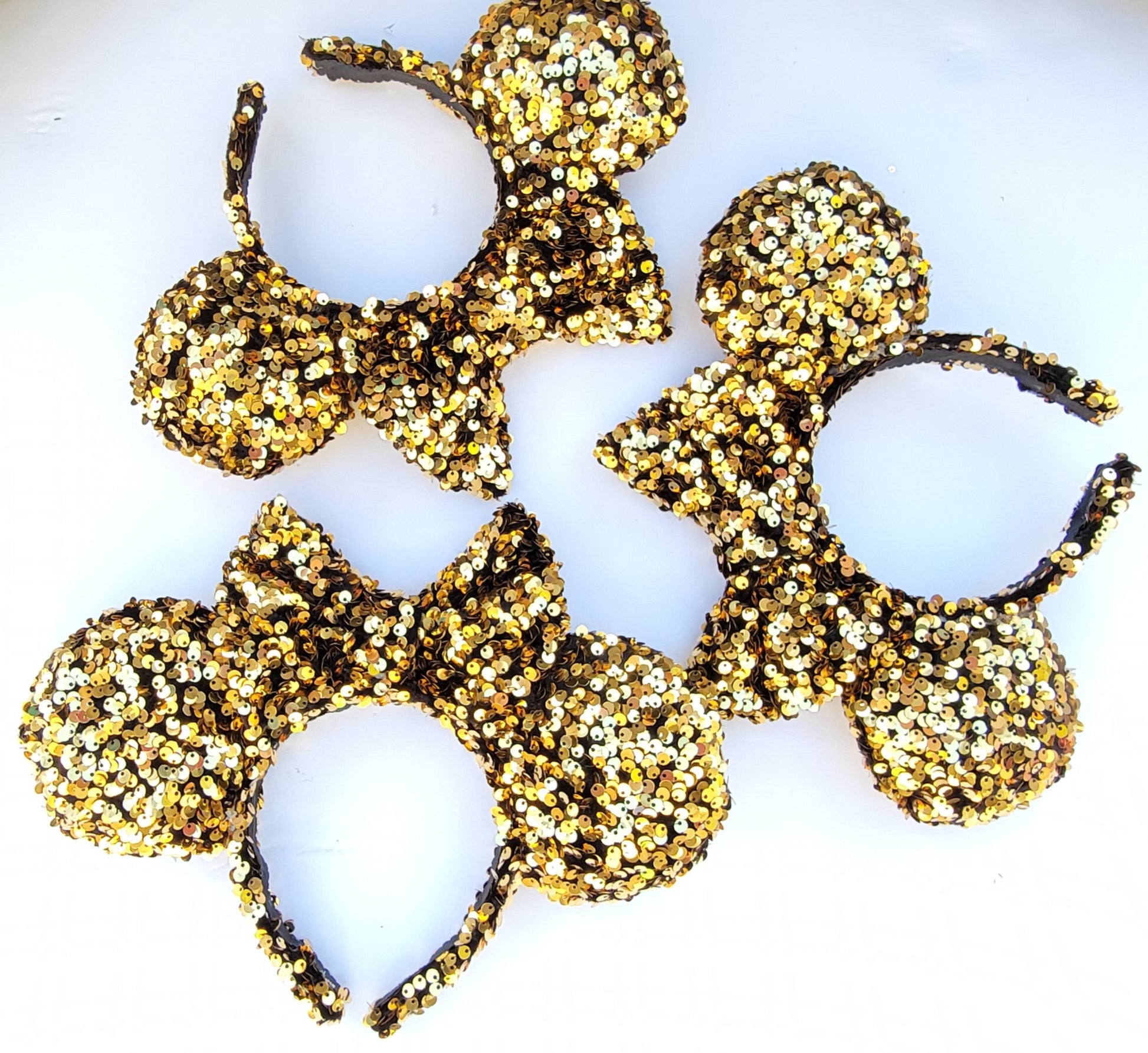 These Gold Sequin Minnie Ears are the perfect way to add a touch of sparkle to your outfit.