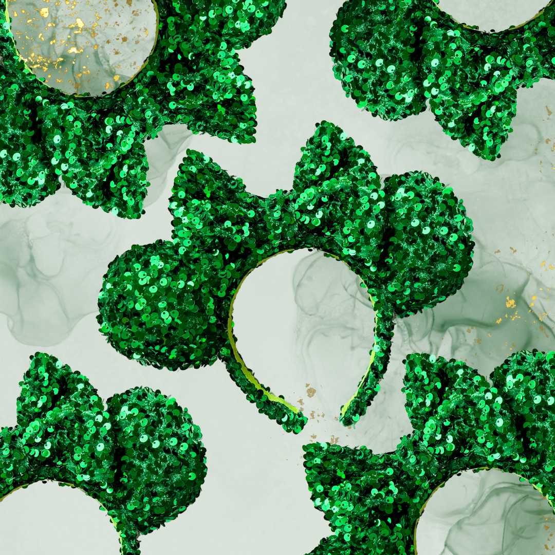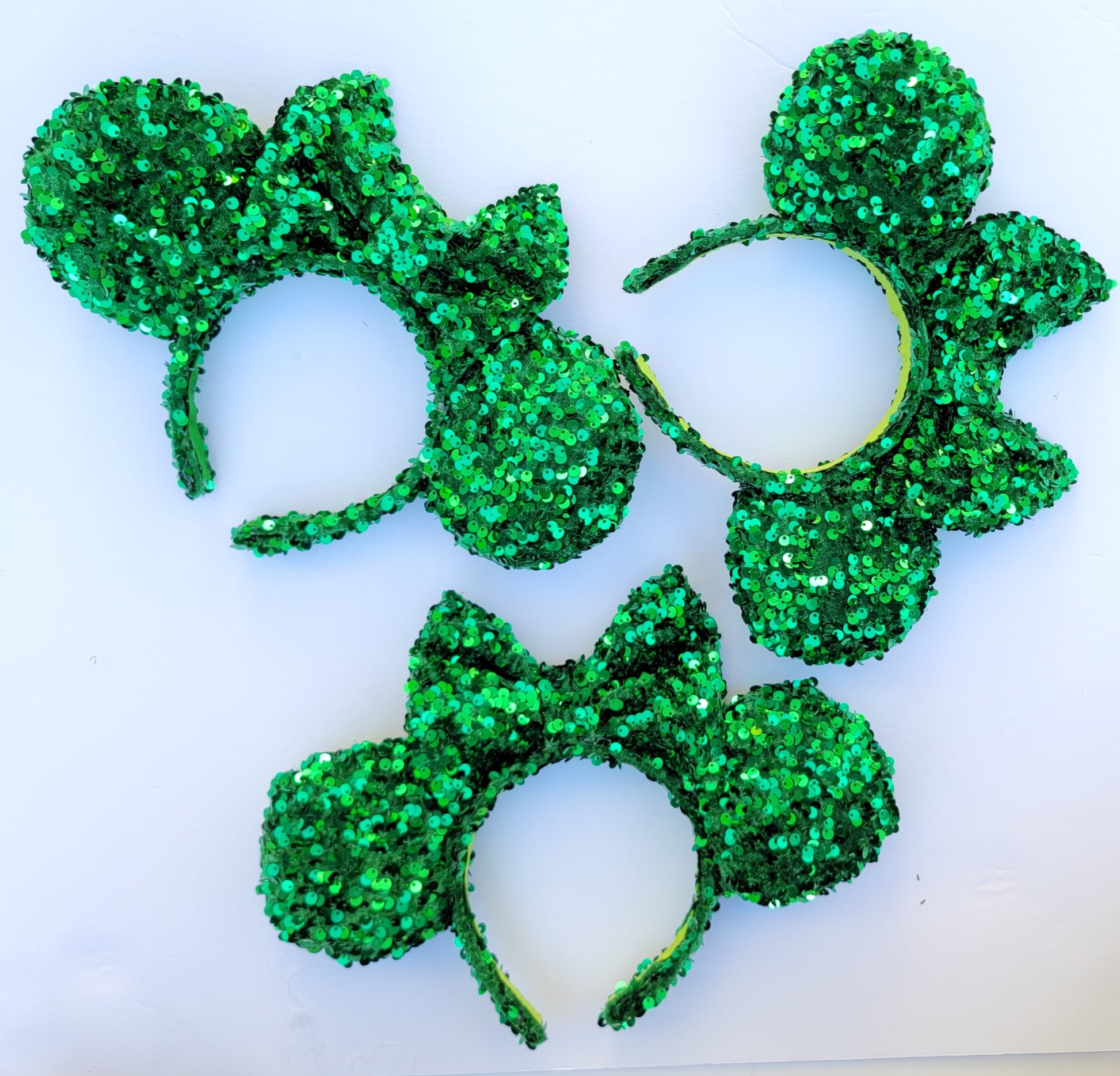 These Green Sequin Minnie Ears are the perfect way to add a touch of sparkle to your outfit.