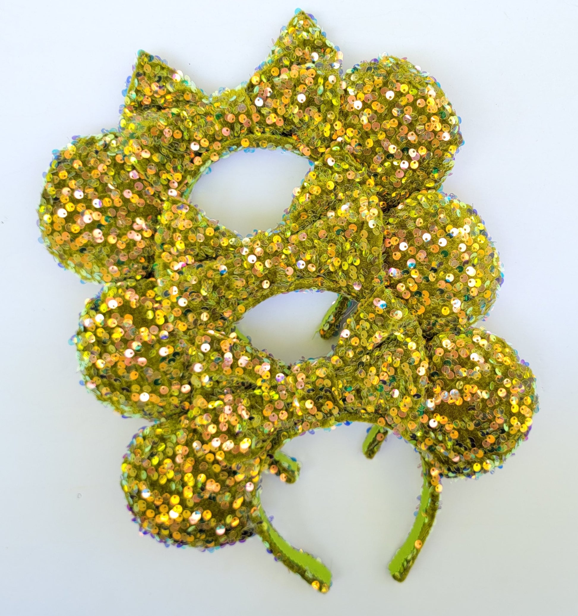 These Green Sequin Minnie Ears are the perfect way to add a touch of sparkle to your outfit.
