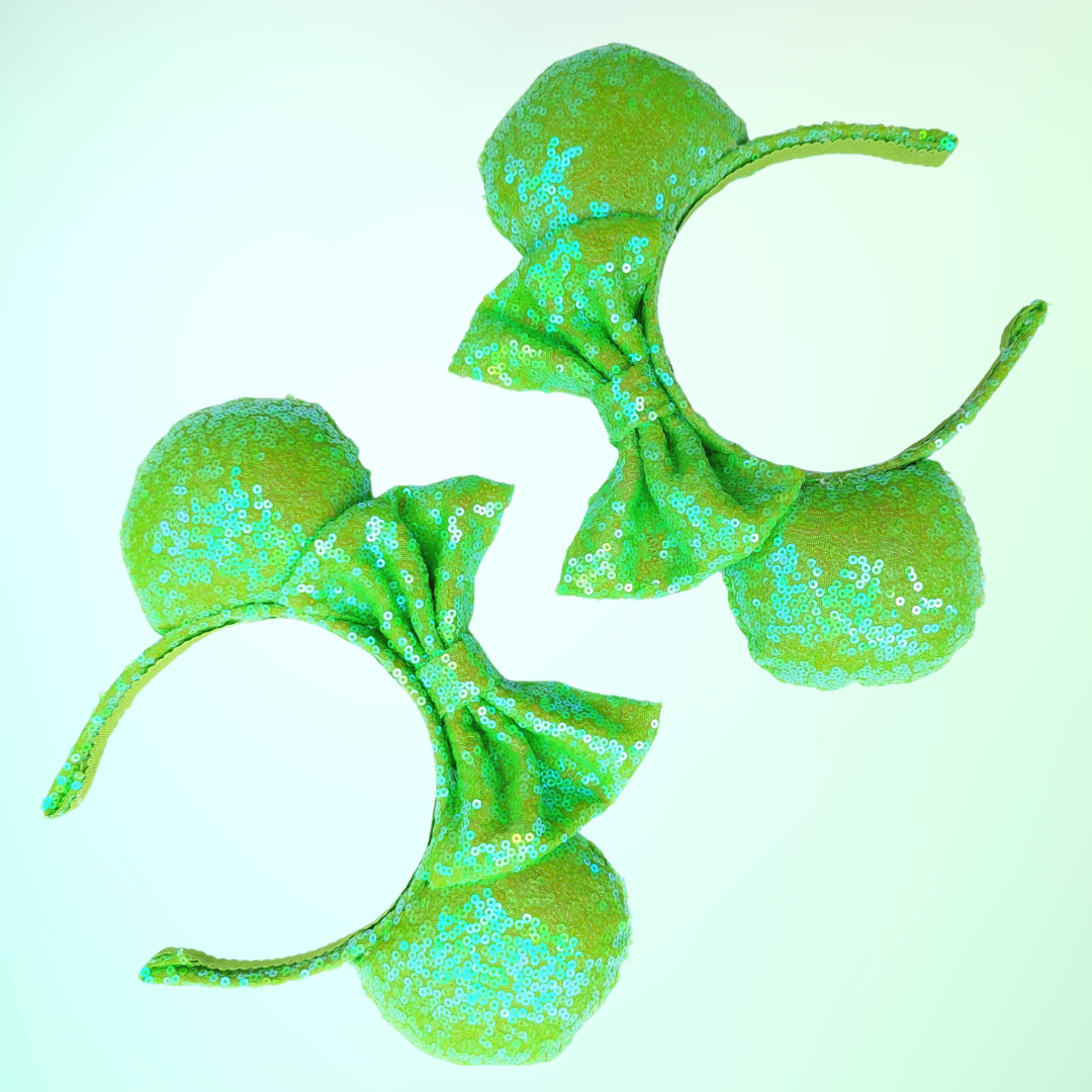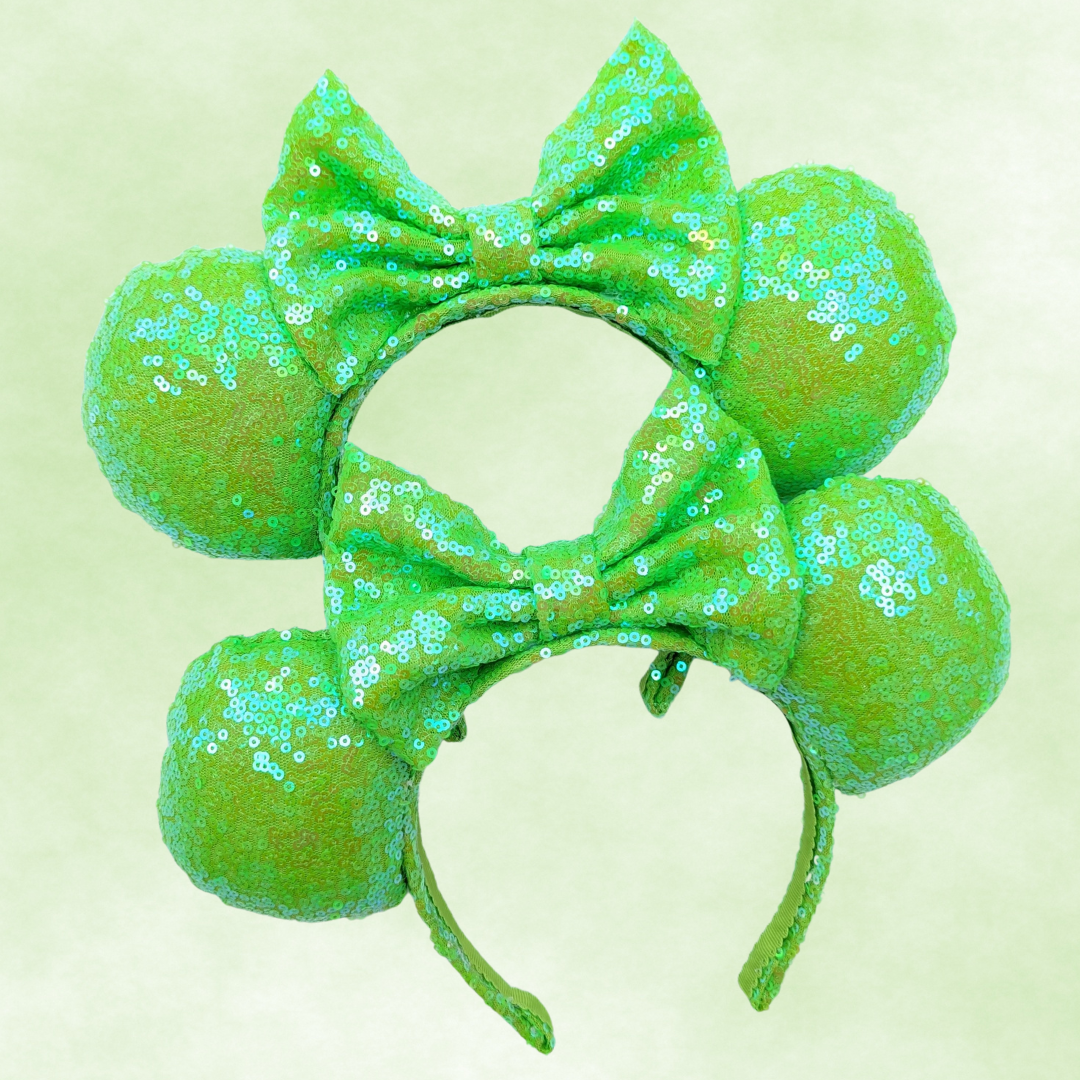 These Green Sequin Minnie Ears are the perfect way to add a touch of sparkle to your outfit.