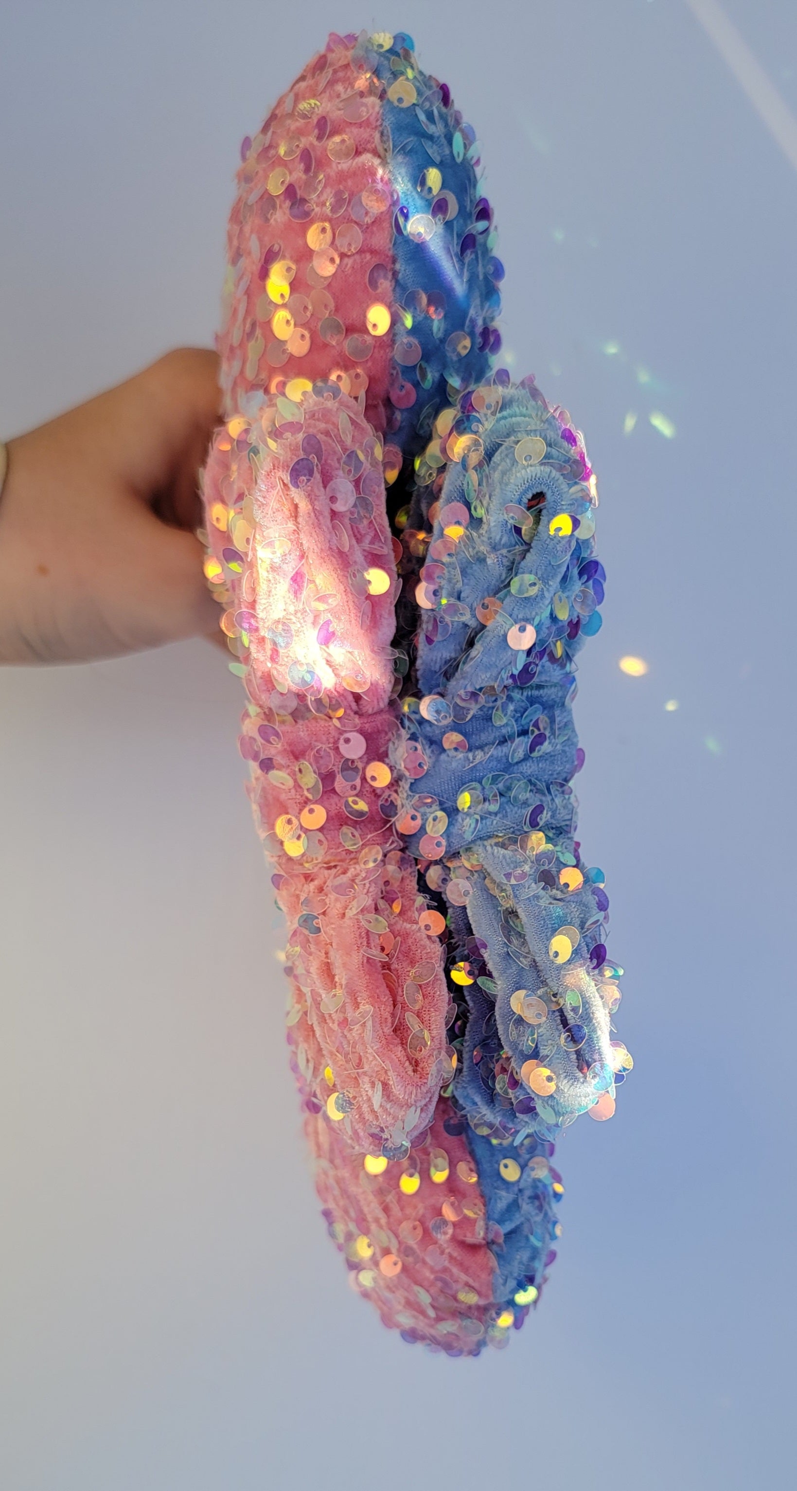 These Pink and Blue Sequin Minnie Ears are the perfect way to add a touch of sparkle to your outfit. You get the best of both worlds with these ears! One side is pink and the other is blue 💗💙