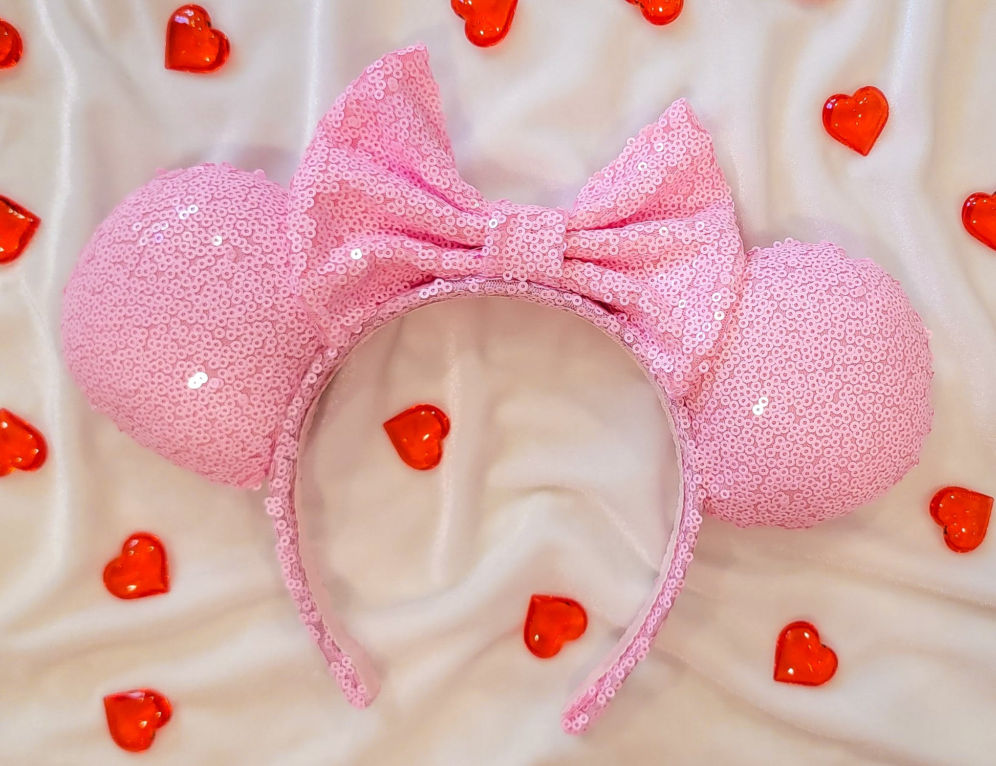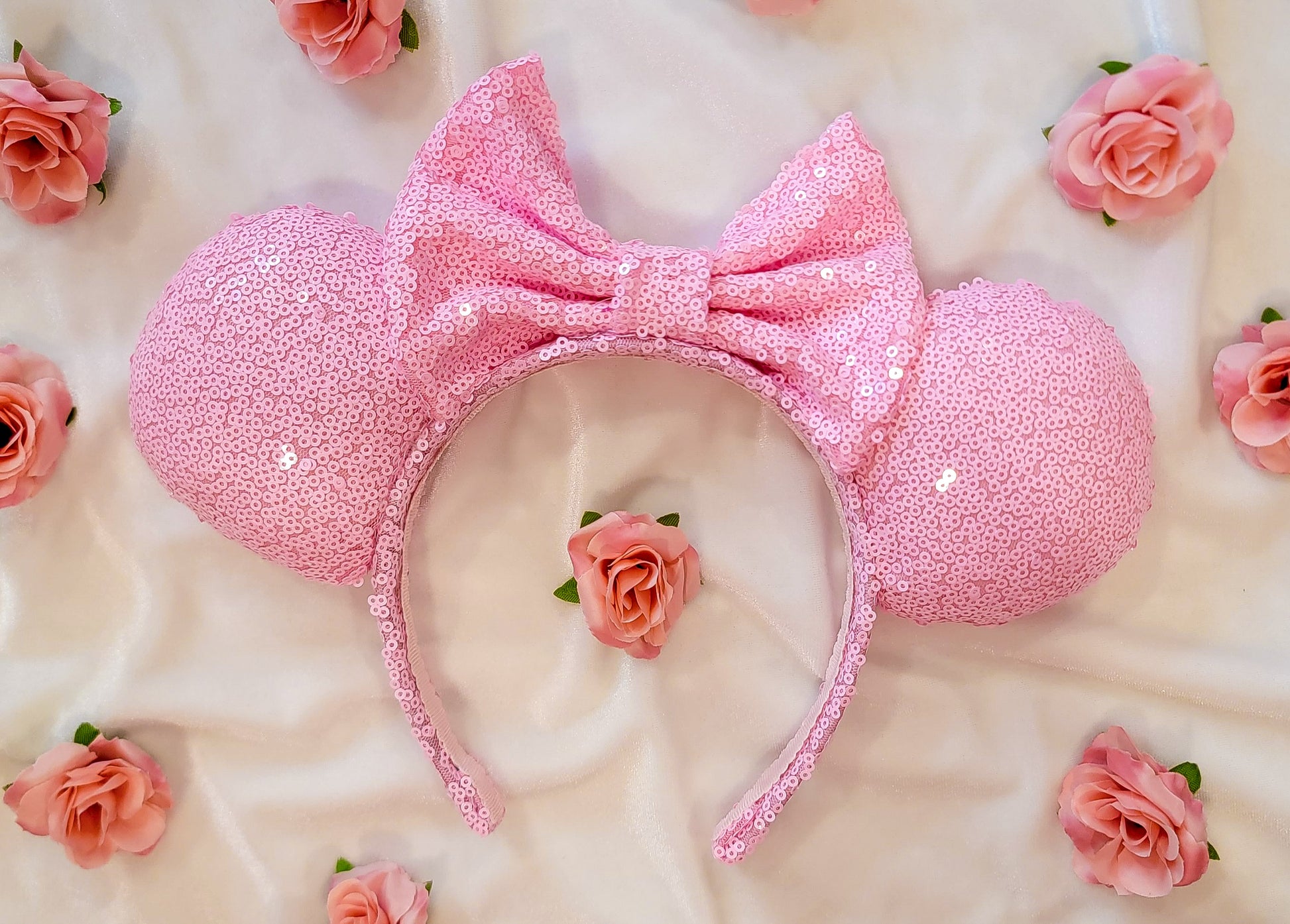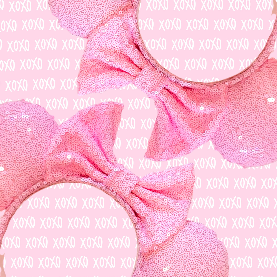 These Pink Sequin Minnie Ears are the perfect way to add a touch of sparkle to your outfit.