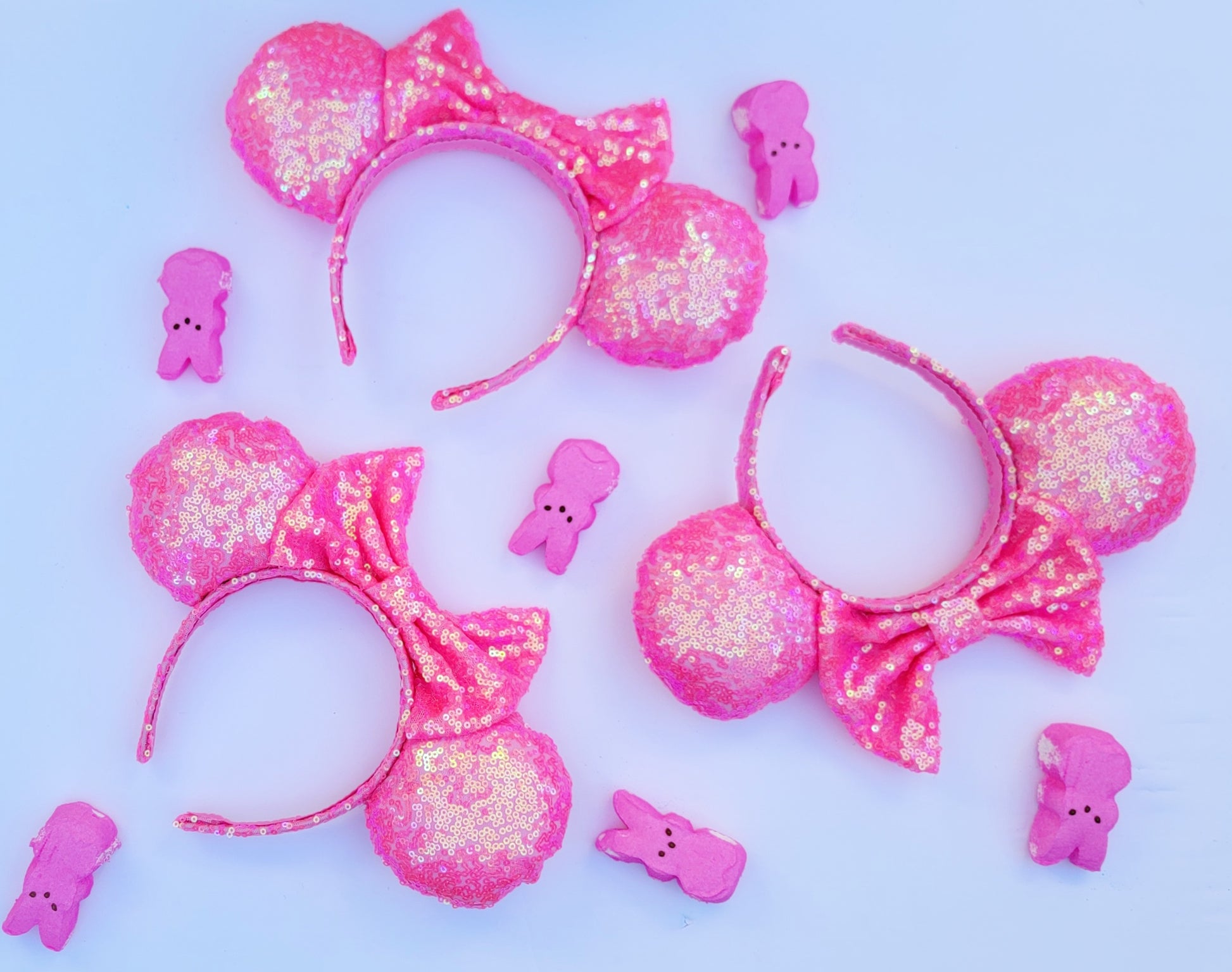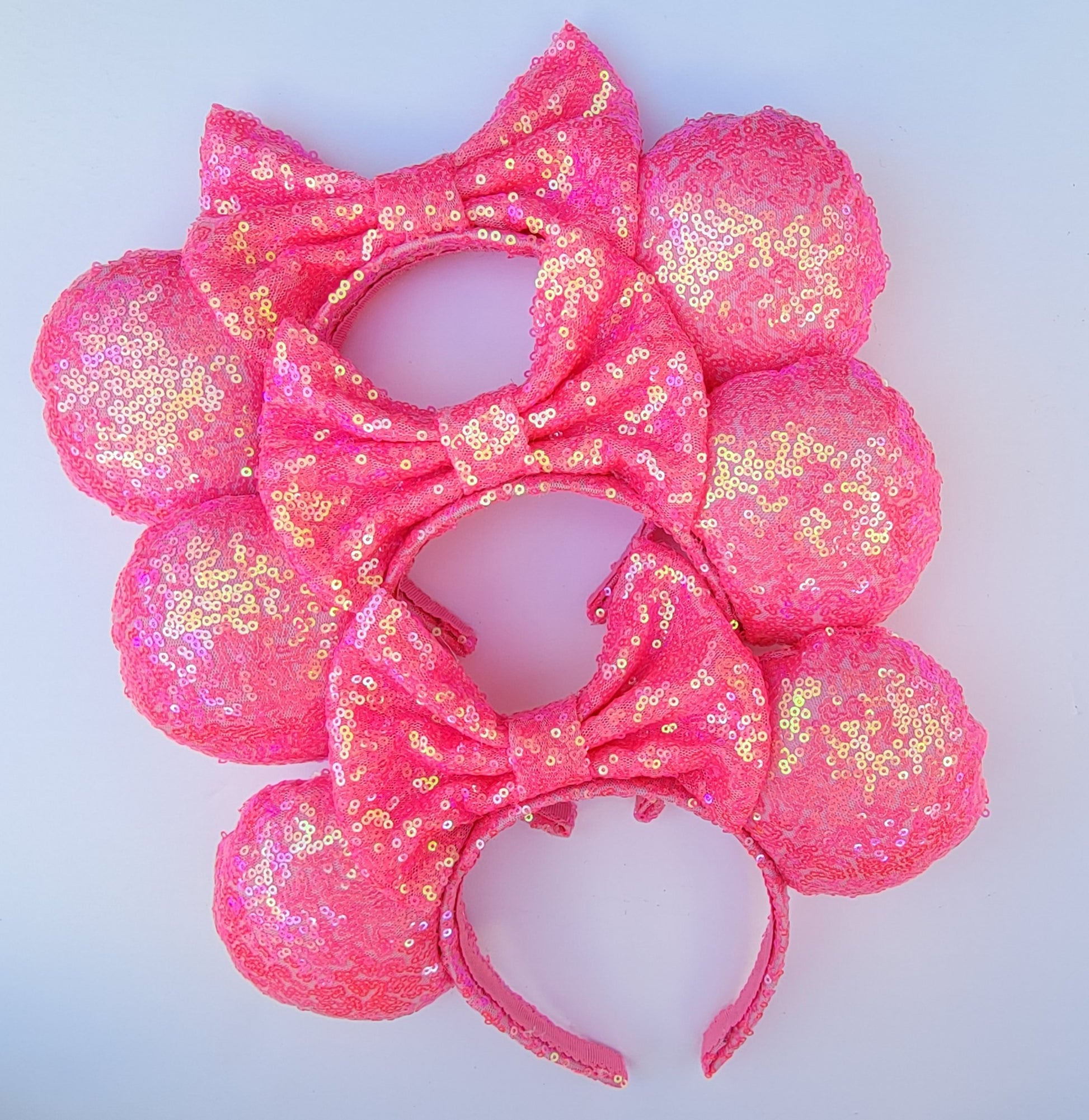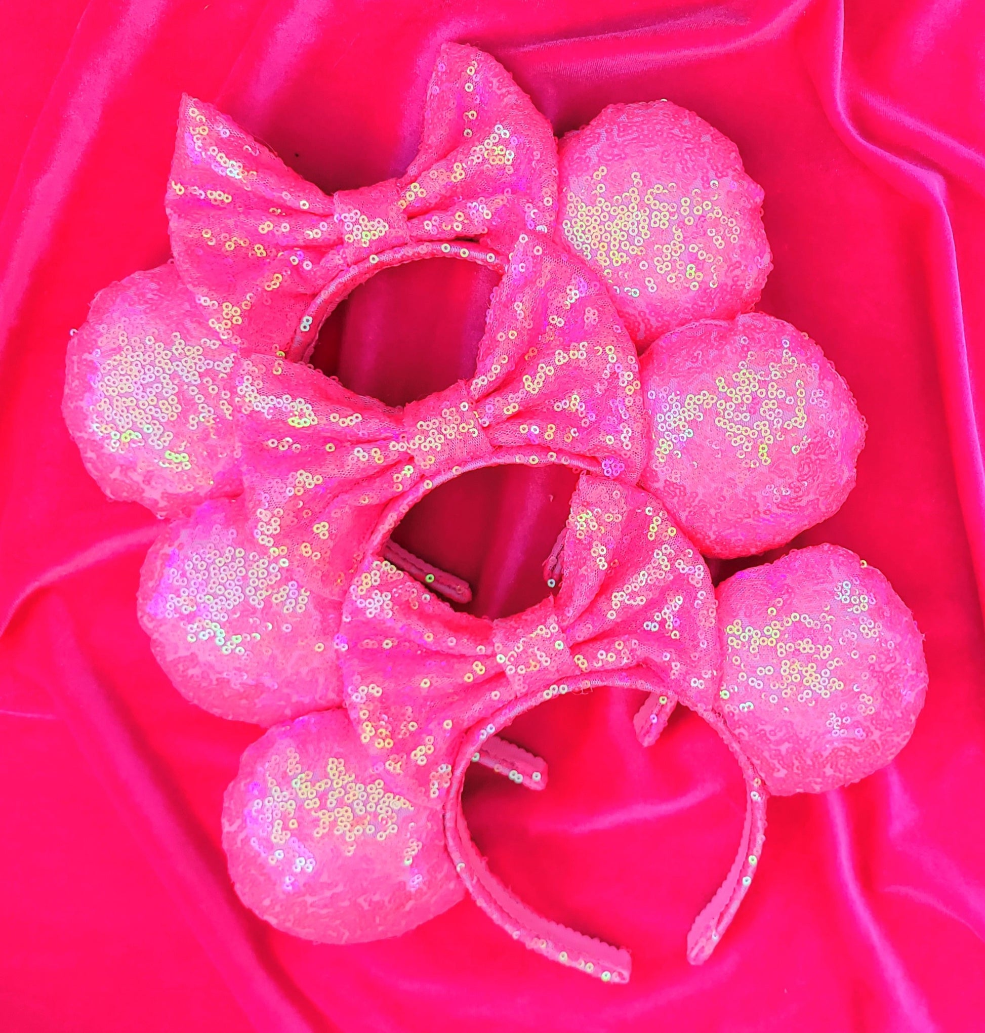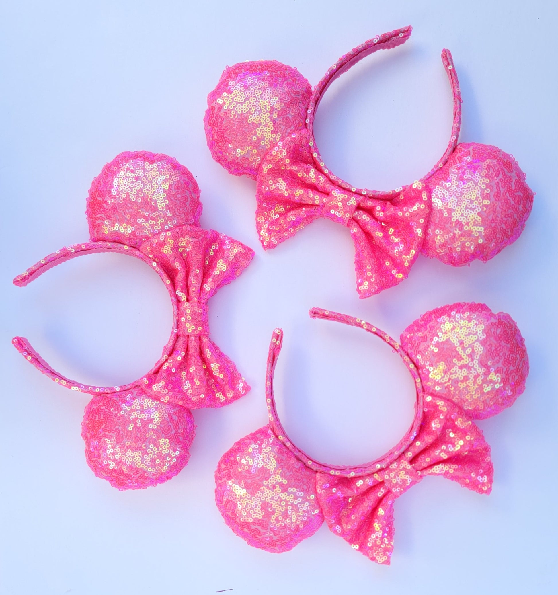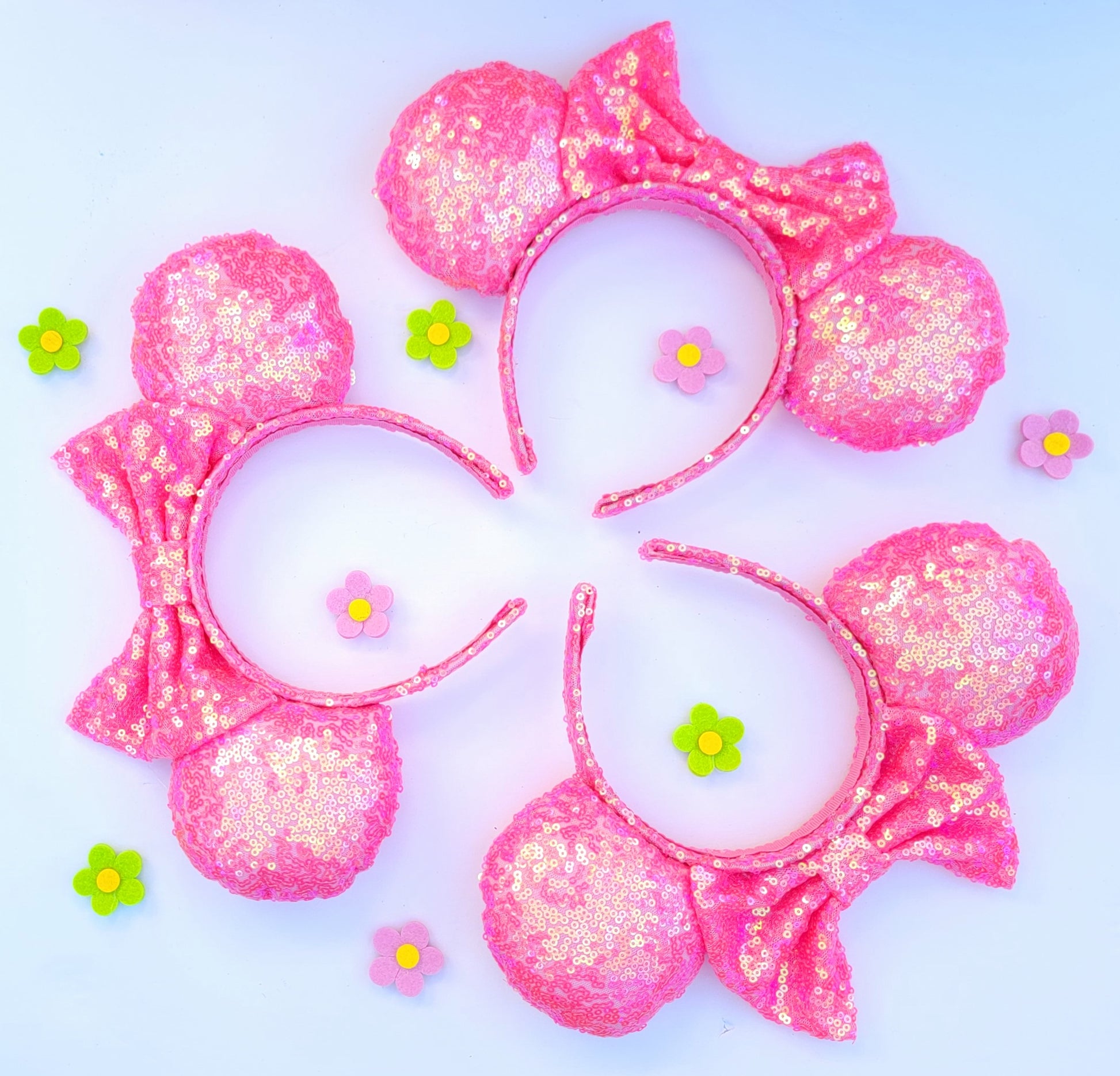 These Pink Sequin Minnie Ears are the perfect way to add a touch of sparkle to your outfit.