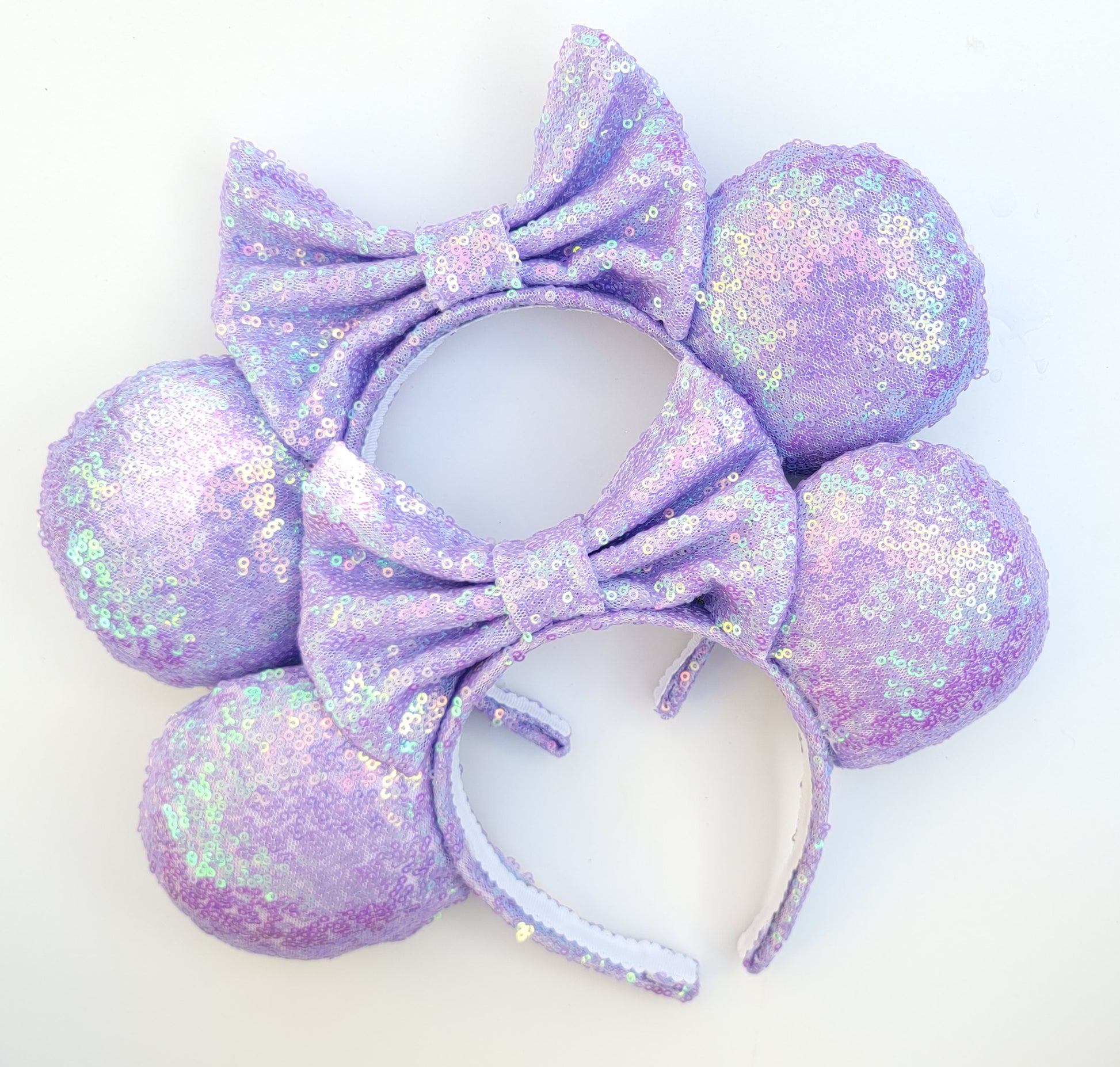 These Purple Sequin Minnie Ears are the perfect way to add a touch of sparkle to your outfit.