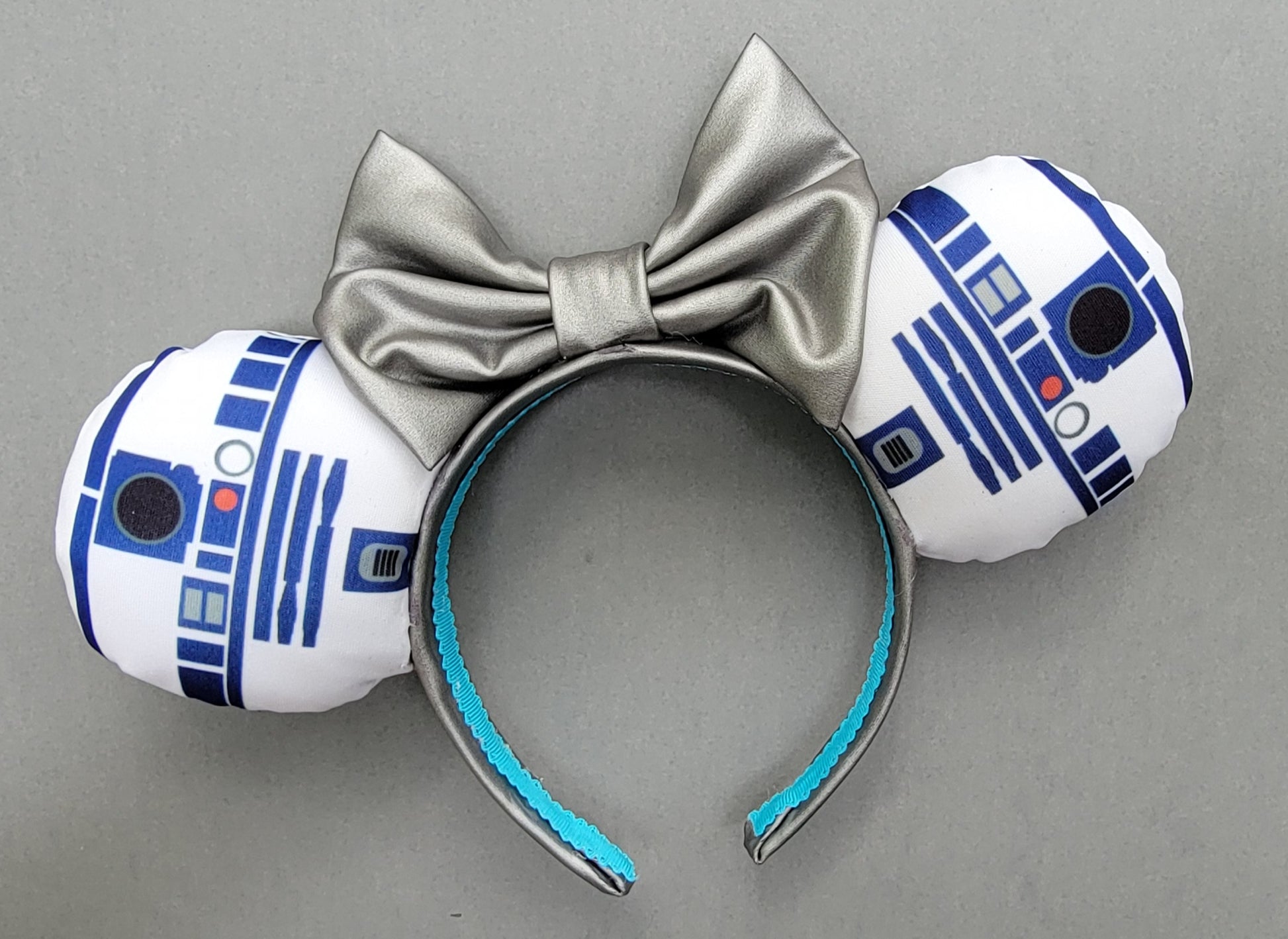 Bring the galaxy’s favorite droid to life with these R2-D2 Minnie ears! Featuring signature blue, silver, and white details with a fun droid-inspired design, these handmade ears are perfect for Star Wars fans, Disney park days, cosplay, or themed gifts. Lightweight and full of personality, they’re ideal for Disneybounding or adding some techy charm to your outfit. A must for any rebel wardrobe!