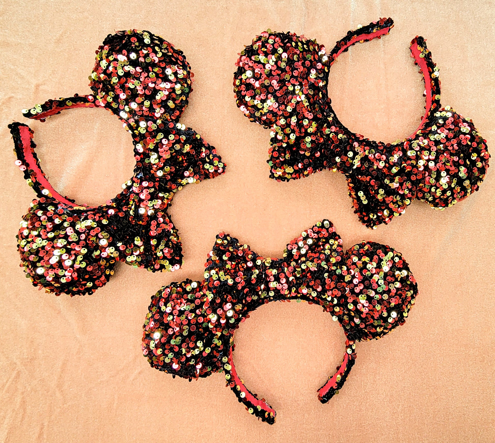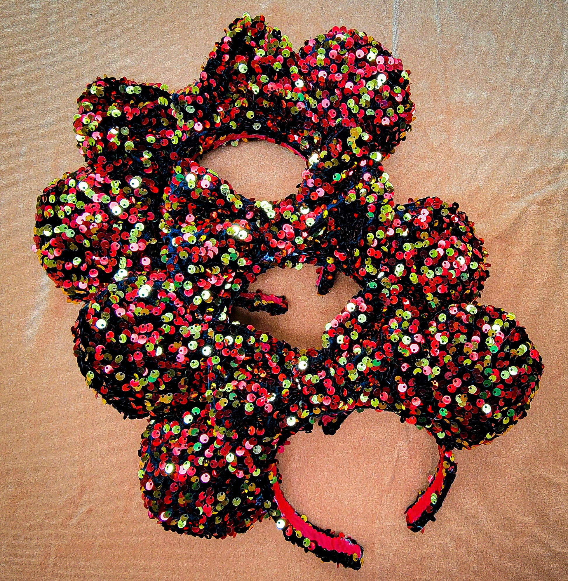 Get in the holiday spirit with these Red and Gold Sequin Minnie Ears are the perfect way to add a touch of sparkle to your outfit.