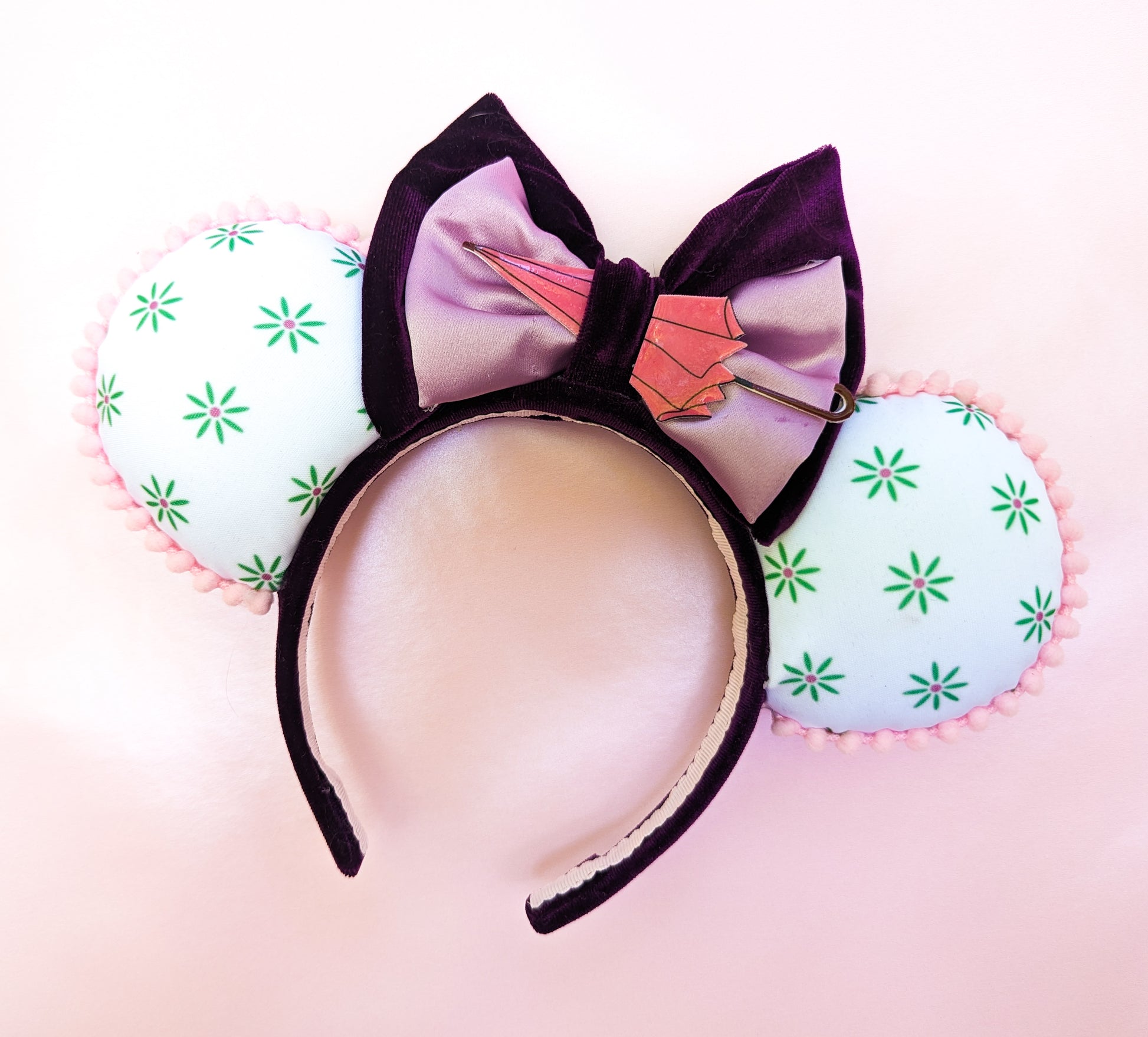 Add a ghostly twist to your outfit with these Haunted Mansion ears featuring the iconic umbrella girl from the stretching room! With spooky details, they’re perfect for Halloween, Disney trips, or Haunted Mansion fans. A must-have for Disneybounders and gothic style lovers. Stand out with eerie elegance!