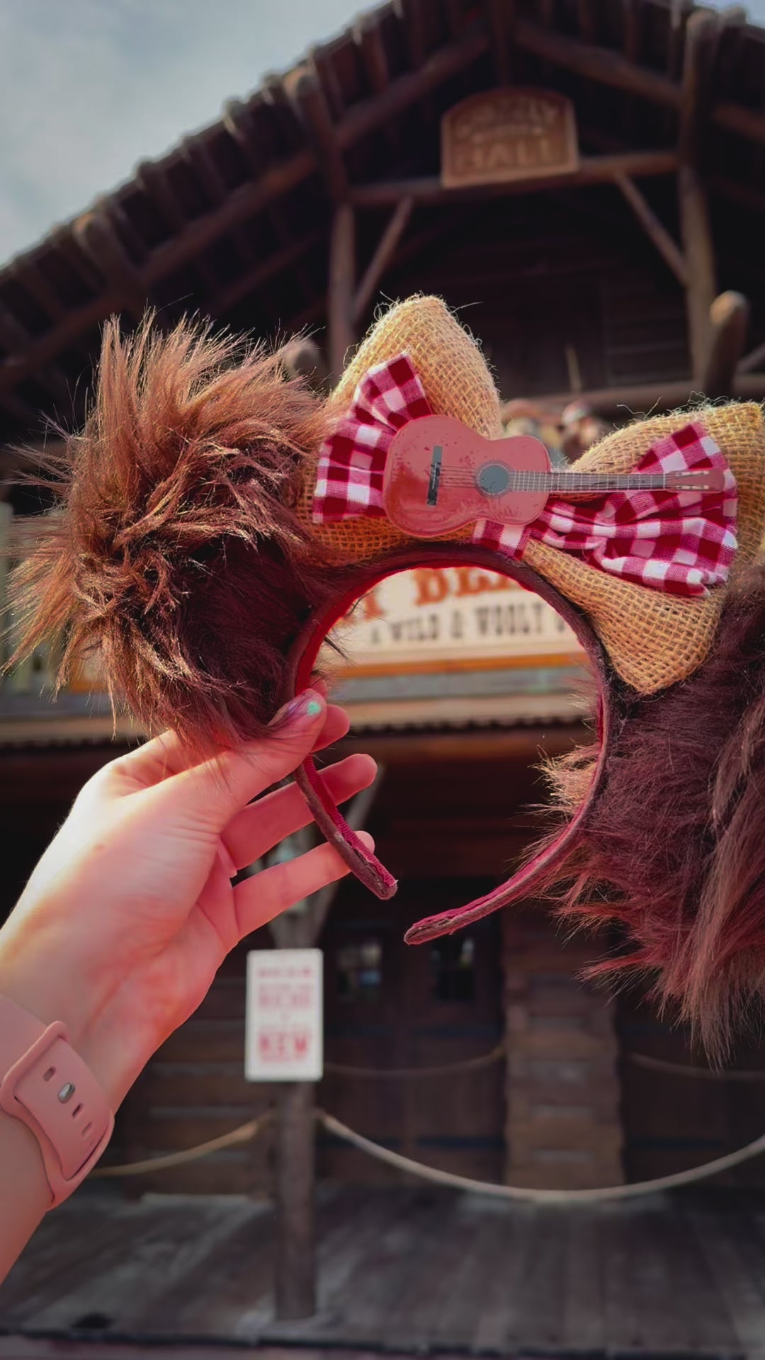 Yee-haw! Get ready for a foot-stompin' good time with these charming Country Bear Jamboree Minnie Ears! Perfect for fans of Disney's classic Frontierland attraction, these unique Minnie ears capture the rustic, musical spirit of the beloved Country Bears, making them an essential accessory for your next park visit or a charming addition to your collection.