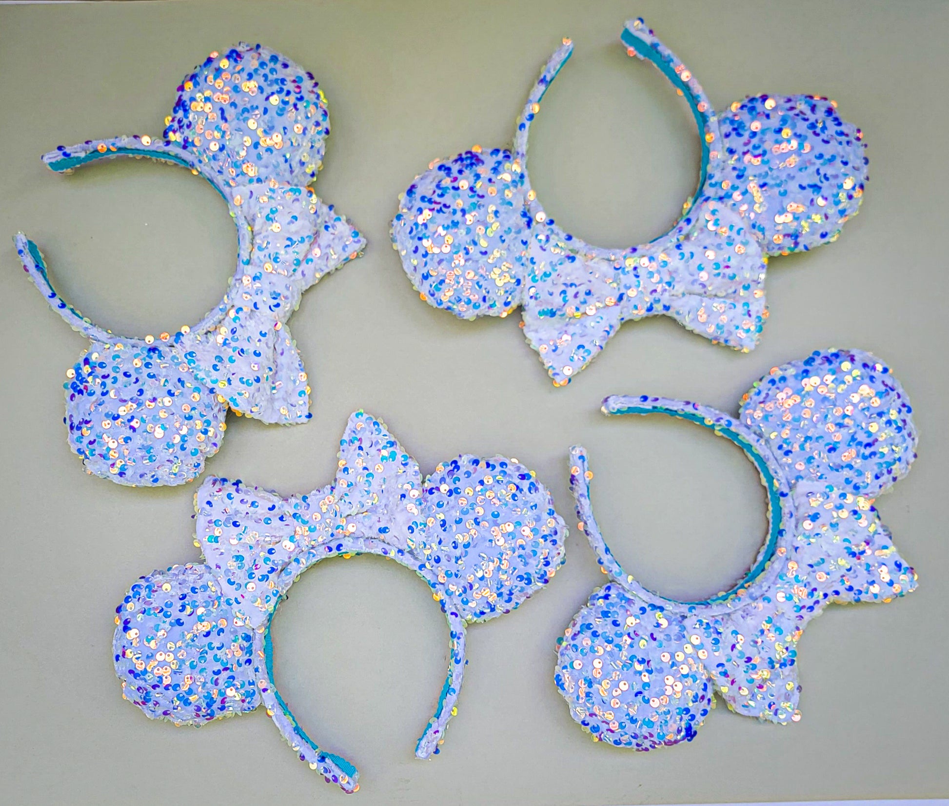 These White Sequin Minnie Ears are the perfect way to add a touch of sparkle to your outfit.