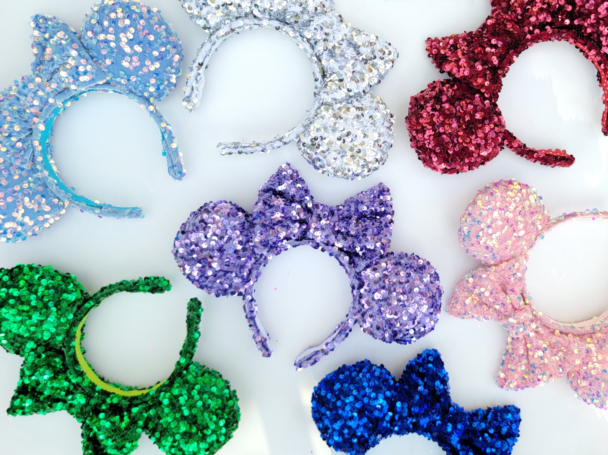 These White Sequin Minnie Ears are the perfect way to add a touch of sparkle to your outfit.