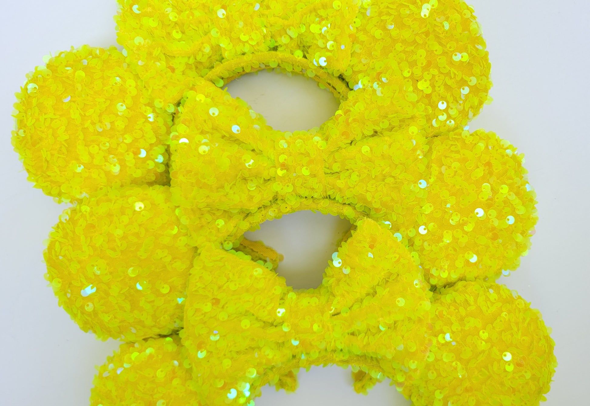 These Yellow Sequin Minnie Ears are the perfect way to add a touch of sparkle to your outfit.